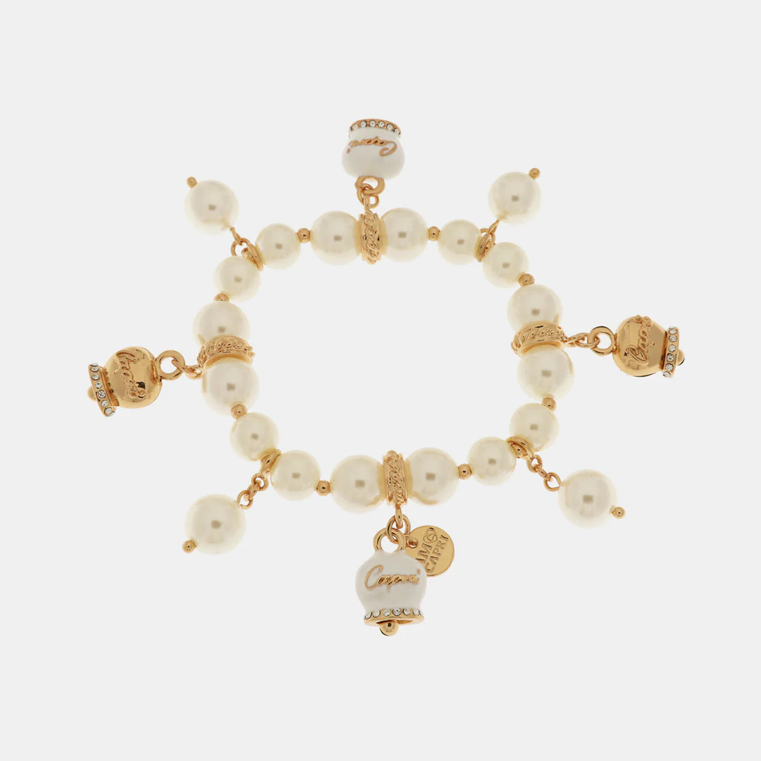 Bracciale in Metallo Bracciale in Metallo con perle e campanelle portafortuna in smalto bianco con scritta Capri. Consegna entro 3gg lavorativi.