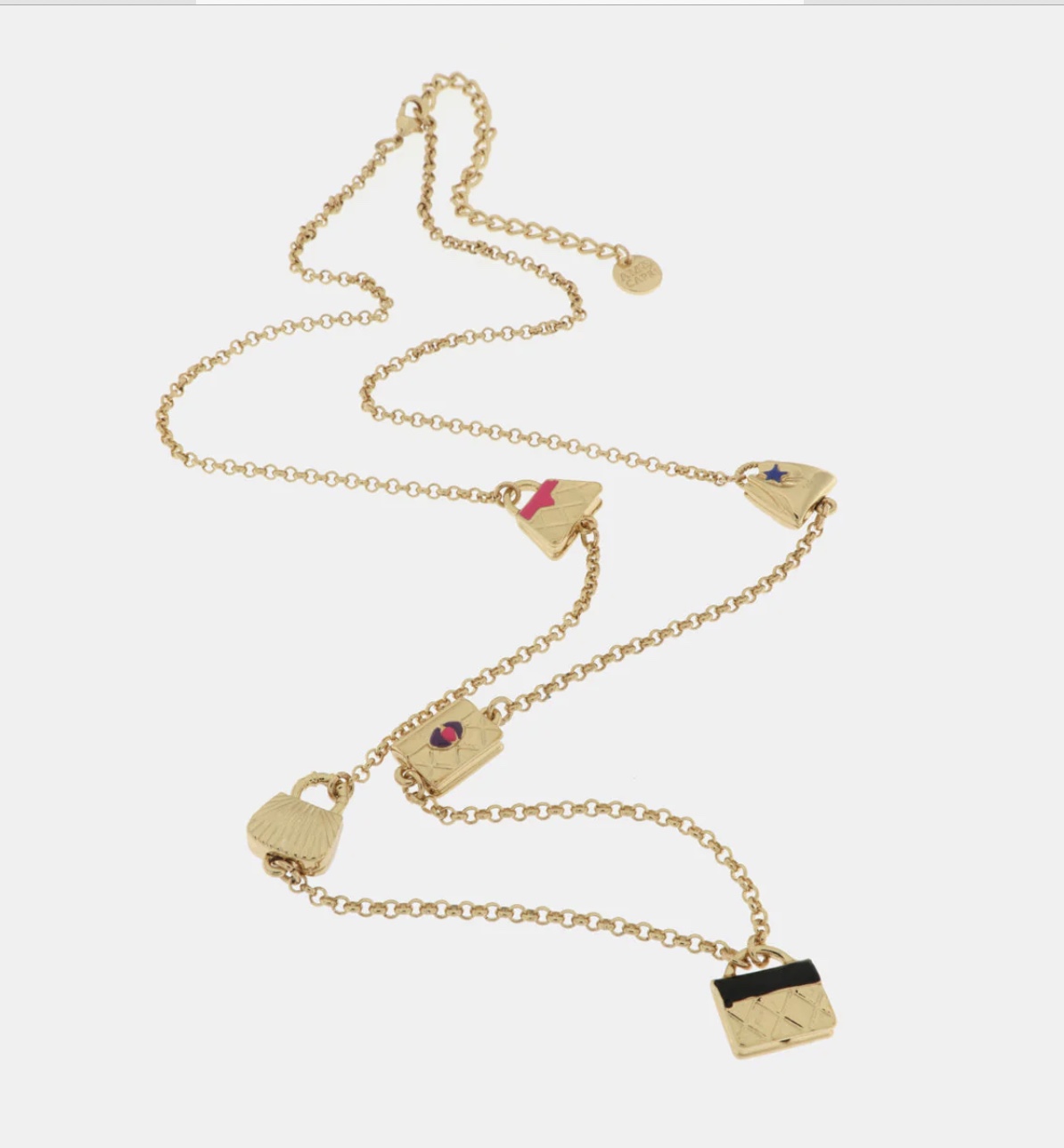 Collana in Metallo con borse . Misura 80 cm con estensione di 10 cm . Consegna entro 3gg lavorativi.