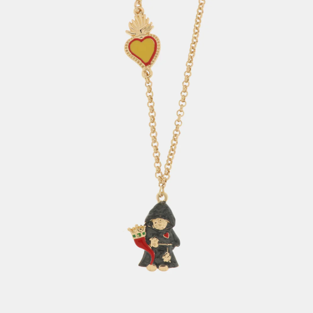 Collana in Metallo placcata oro, con munaciello e cornetto. Misura 45 cm con estensione di 5 cm. Consegna entro 3gg lavorativi.