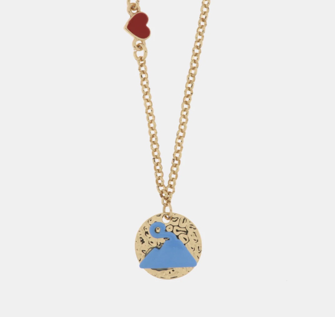 Collana in Metallo con medaglia e disegno Vesuvio azzurro. Misura 40 cm con estensione di 5 cm. Consegna entro 3gg lavorativi.