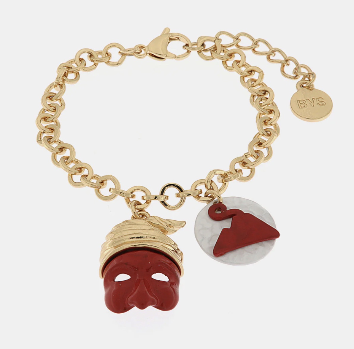 Bracciale in Metallo con Pulcinella e pendente a forma di Vesuvio. Misura 17 cm con 3 cm di estensione. Consegna entro 3gg lavorativi.