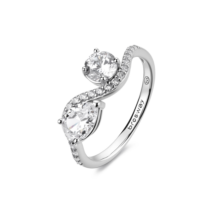 Anello 10 FANCY in argento 925/1000 rodiato, con cubic zirconia white forma round e pear