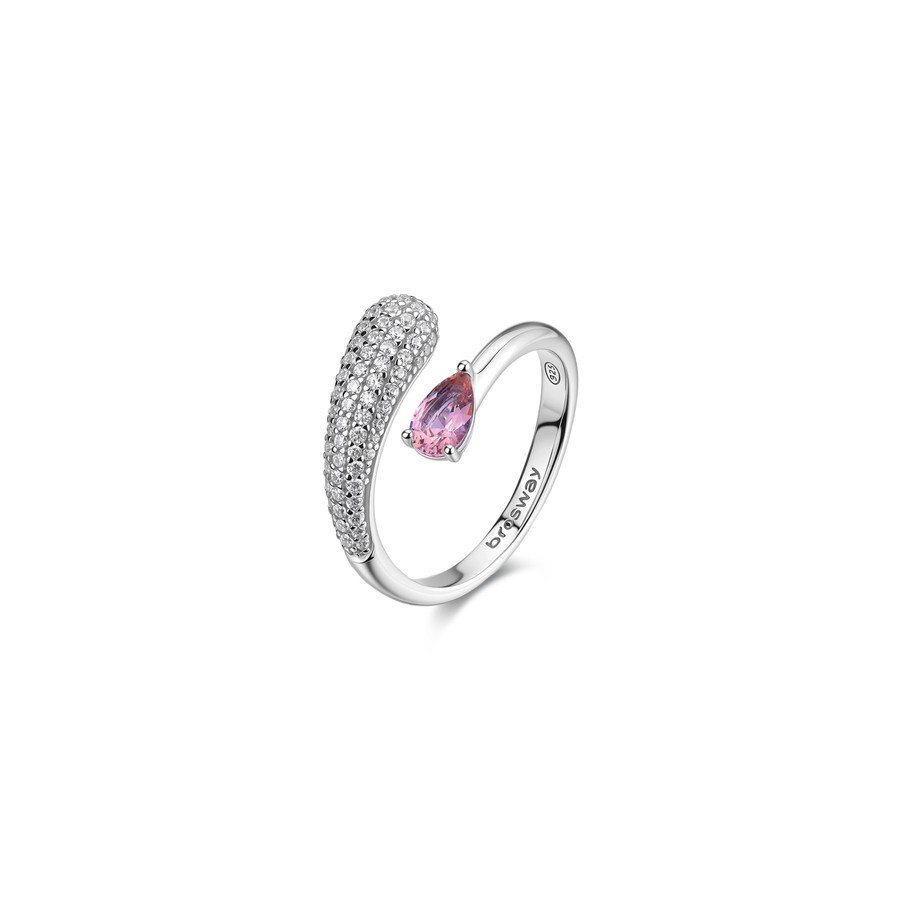 Anello contrarié in argento rodiato 925‰ con cubic zirconia chiari e colore vintage rose.