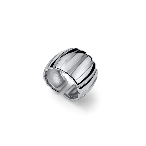 Anello a fascia in finitura lucida argentata. Misura 18 leggermente regolabile. Consegna entro 3gg lavorativi.