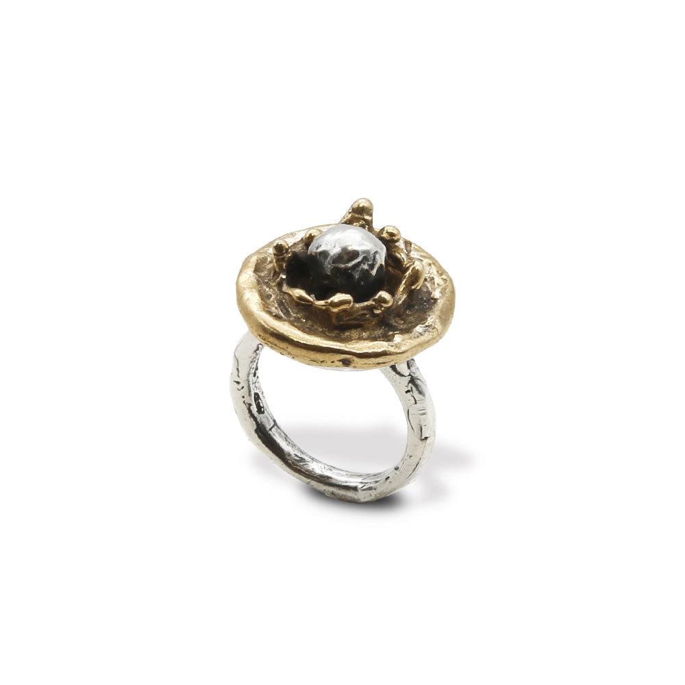 L’ anello artigianale della collezione Sasso nello Stagno, un gioiello che racchiude l’eleganza della natura in un design scultoreo e sofisticato. Realizzato a mano con cura in bronzo e argento, questo anello presenta una forma evocativa che richiama le onde concentriche create da un sasso gettato nello stagno. Misura 15. Consegna entro 3gg lavorativi. Spedizione gratuita.