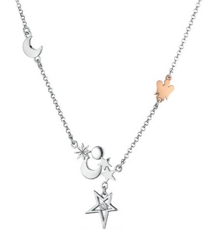 Collana con stelle e lune in argento 925, Angelo in argento rosato.Consegna entro 3 gg lavorativi.Spedizione gratuita.