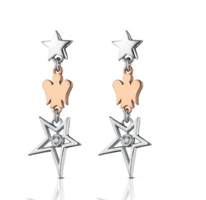 Orecchini con stelle in argento 925 Con angeli in argento rosato e diamanti.Consegna entro 3 gg lavorativi.Spedizione gratuita.