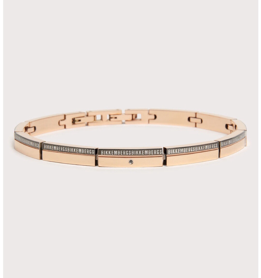 Ispirato all’iconico tape che caratterizza capi e accessori tessili, questo sottile bracciale da uomo Bikkembergs della collezione Band è impreziosito da un diamante naturale nero taglio brillante da 0,01 carati. Realizzato in acciaio inossidabile e anallergico dal trattamento ION PLATING rosé (comunemente chiamato IP) in contrasto cromatico con la banda che riporta il tape Bikkembergs, questo bracciale è dotato di chiusura a clip.