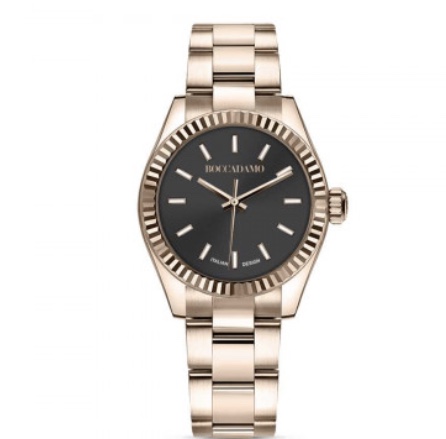 Orologio solo tempo con quadrante nero, indici in rilievo e bracciale Oyster semi solido color oro rosa. Consegna entro 3gg lavorativi.Movimento: al quarzo Miyota 2035.Resistente all’acqua 3 ATM. Consegna entro 3gg lavorativi. Spedizione gratuita.