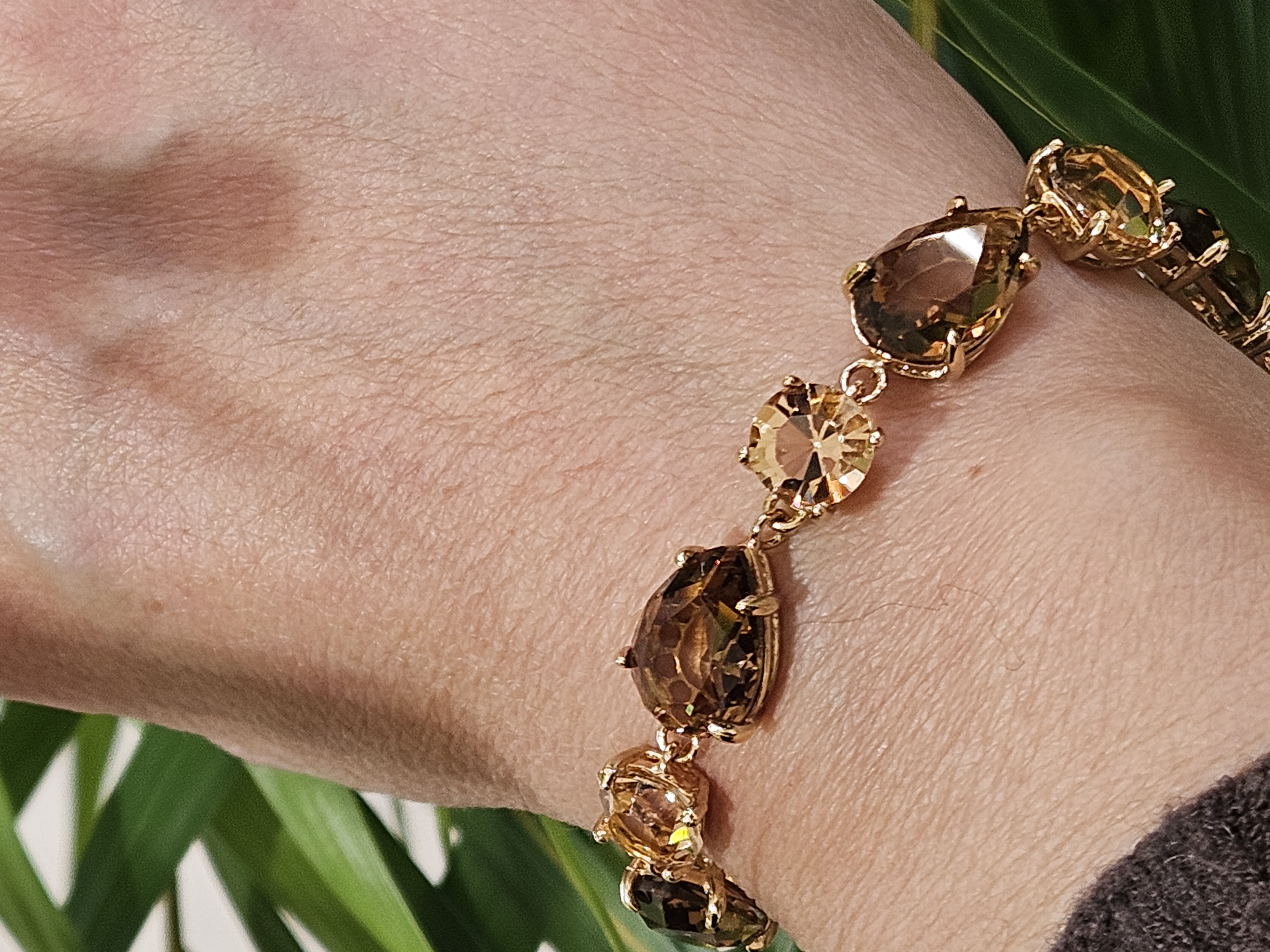 Bracciale Collezione il mio Re in lega placcata oro con cristalli dalle tonalità marrone chiaro e scuro.Lunghezza regolabile