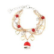 Bracciale in Metallo con campana pendente rossa a maglia multifilo con cuori e corallini colorati. Misura 17 cm + 3 cm di estensione. Consegna entro 3gg lavorativi.