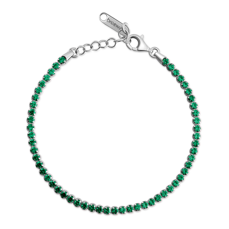 Bracciale tennis in argento rodiato 925‰ con cubic zirconia colore emerald.