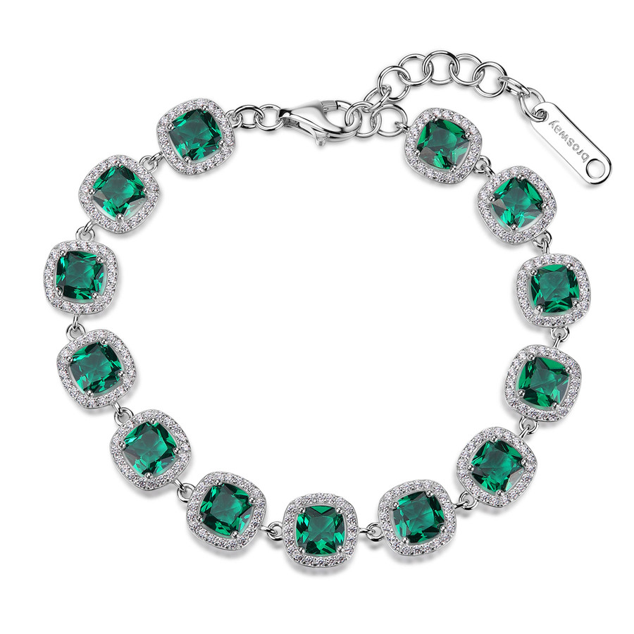 Bracciale in argento rodiato 925‰ con cubic zirconia chiari e cubic zirconia colore emerald.