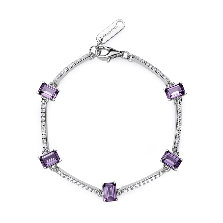 Bracciale semirigido in argento rodiato 925‰ con cubic zirconia chiari e baguette cubic zirconia colore amethyst.