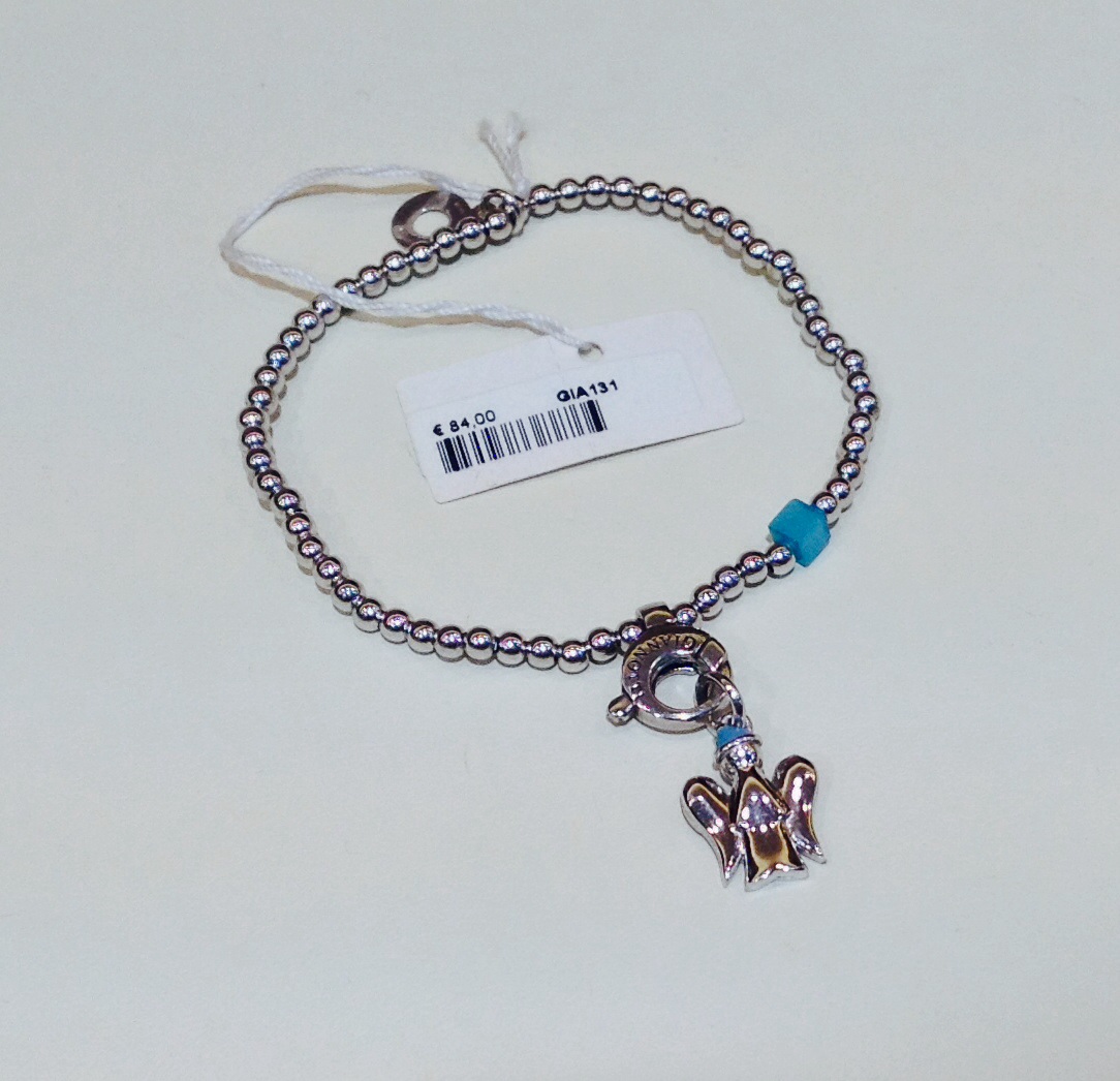 Bracciale in argento con Angelo con cappellino smaltato azzurro . Consegna entro 3gg lavorativi. Spedizione gratuita.