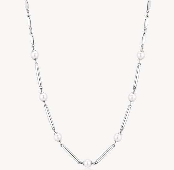 Collana lunga in acciaio 316L con perle. Consegna entro 3gg lavorativi.