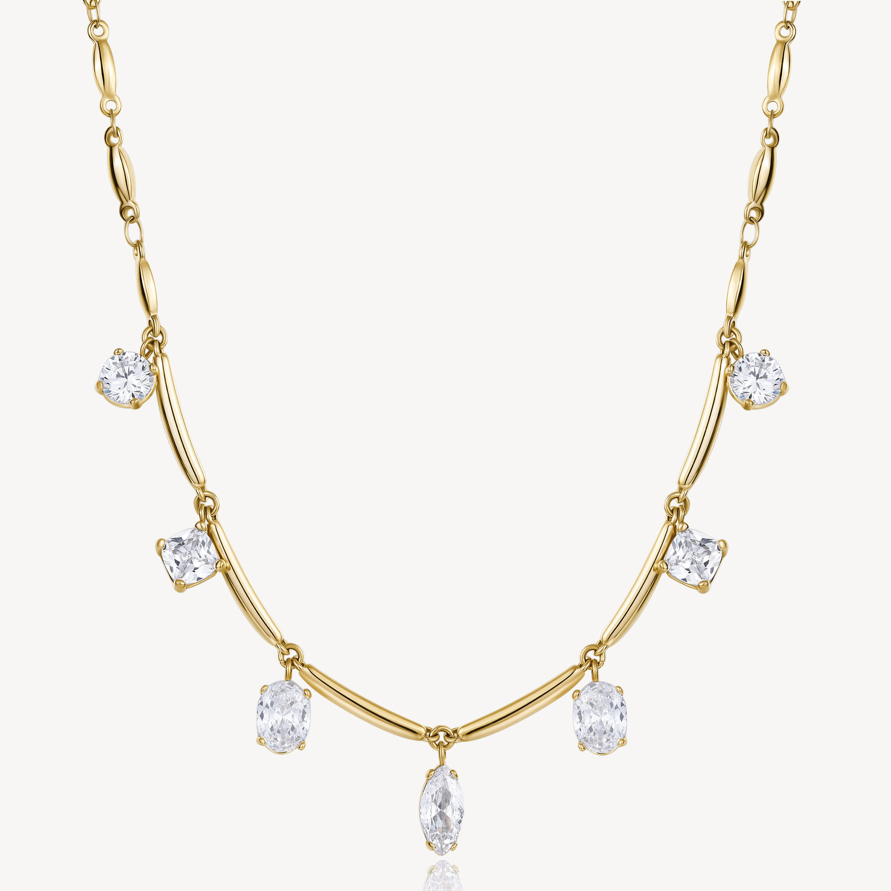 Collana girocollo in acciaio 316L, finitura pvd oro 14K e cubic zirconia. Misura 46 cm. Consegna entro 3gg lavorativi. Spedizione gratuita.