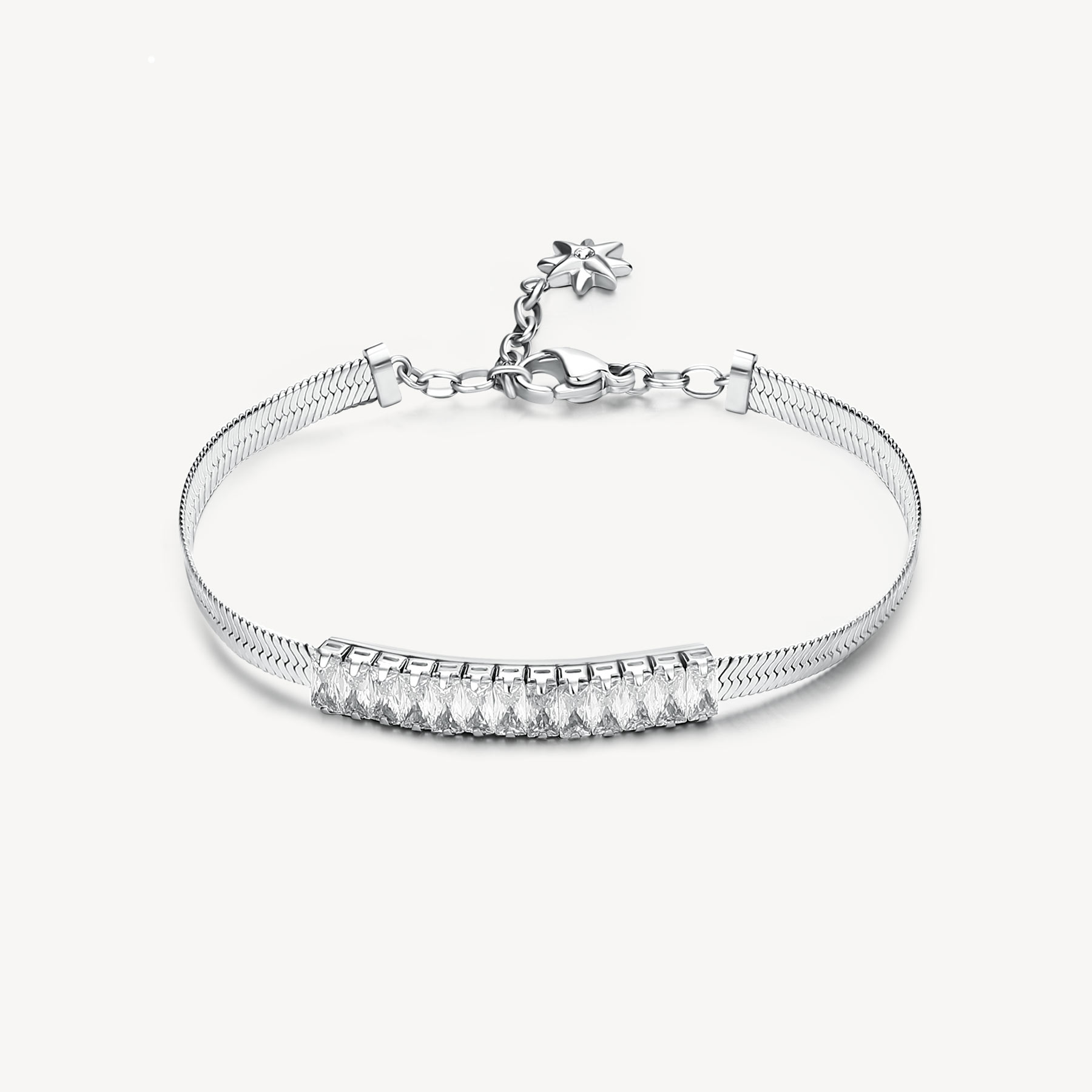 Bracciale in acciaio 304 e cubic ziconia .Misura 18.5 regolabile. Consegna entro 3gg lavorativi