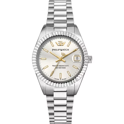 OROLOGIO PHILIP WATCH CARIBE URBAN – Genere : Donna, Materiale e finitura cassa: Acciaio, Misura cassa: 28mm, Spessore cassa: 8,95, Finitura: Lucido, Satinato, Colore cassa: Silver, Vetro: Vetro zaffiro antiriflesso, Materiale cinturino: metallo, Colore cinturino: Silver, Chiusura: Fibbia farfalla con pulsanti, Swiss made: Si, Water resistant: 10 atm, Garanzia: Ufficiale 2 anni Philip Watch. Consegna entro 3gg. Spedizione gratuita