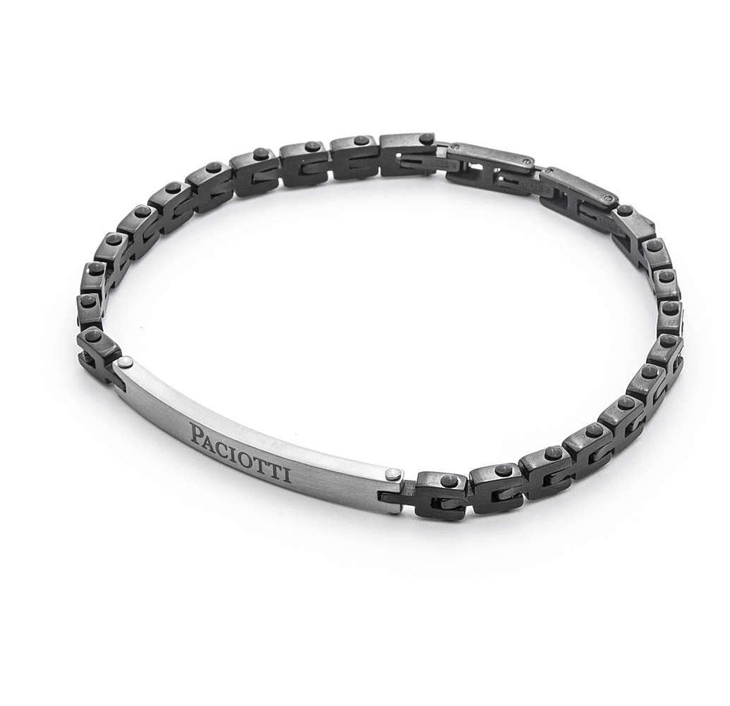Bracciale realizzato in acciaio anallergico con trattamento ip nero e targa centrale logata.