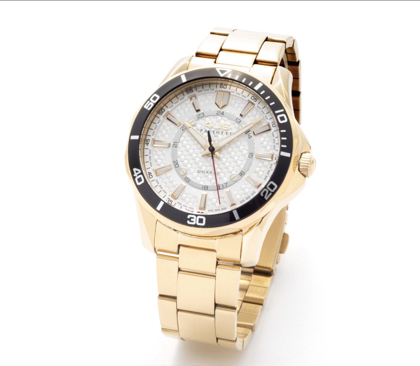 Orologio solo tempo di Cesare Paciotti, realizzato in acciaio di colore nera e oro. Il quadrante è argento con movimento Miyota 2035, indici di colore oro e lancette luminose. La cassa ha una dimensione di 40 mm, ghiera nera e oro lucida, chiusura a deployante e fondello a pressione logato. Il cinturino è in braccialato oro resistente all’acqua 5 atm.Consegna entro 3gg lavorativi.Spedizione gratuita.