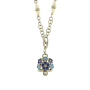 Collana in Metallo Campanella con fiori blu. Misura 60 cm. Consegna entro 3gg lavorativi.