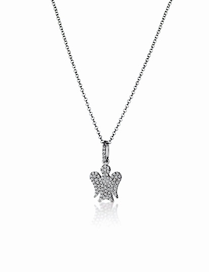 Collana con pendente in argento con zirconi bianchi, lunghezza catena 45cm accorciabile a 40cm.Dimensione Angelo base cm1,2 altezza cm1,6.Consegna entro 3gg.