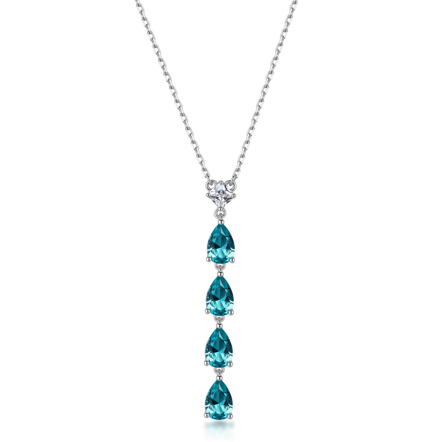 Collana in argento rodiato 925‰ con cubic zirconia chiari e pear cubic zirconia colore paraiba.