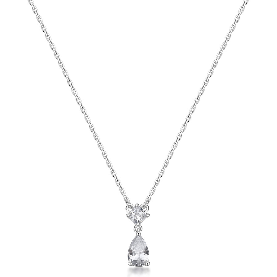 Collana girocollo in argento rodiato 925‰ e pendente con square e pear cubic zirconia.