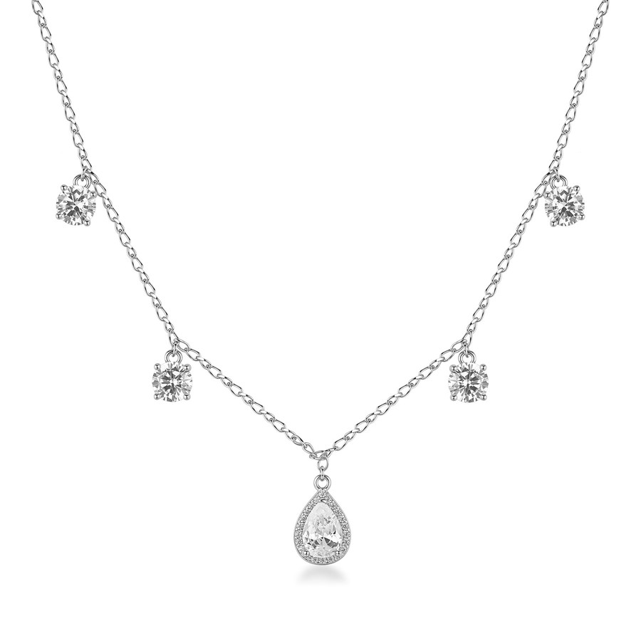 Collana FANCY in argento 925/1000 rodiato, con pendenti con cubic zirconia white forma round e pear