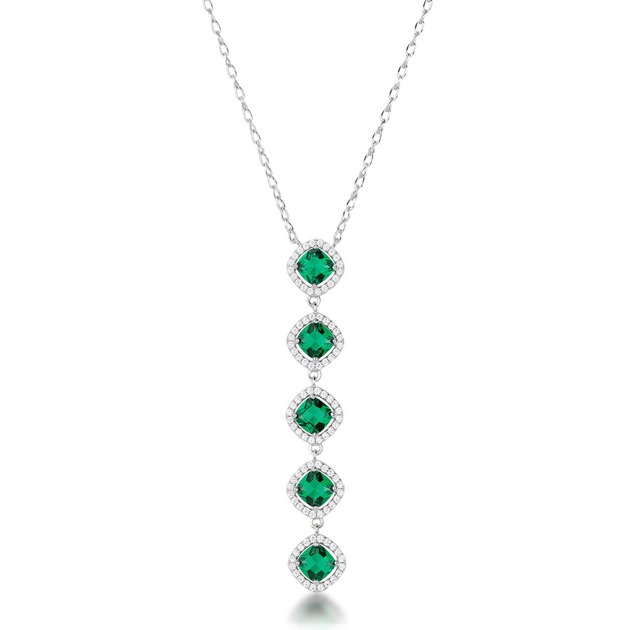 Collana girocollo in argento rodiato 925‰ e pendente con cubic zirconia chiari e cubic zirconia colore emerald.