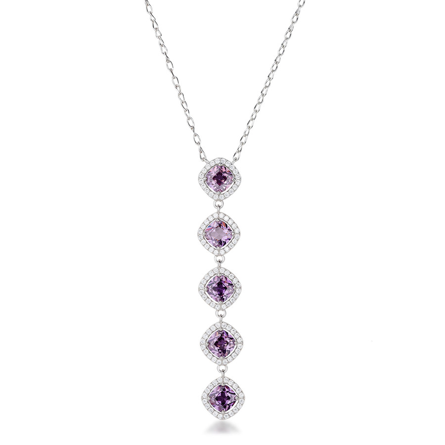 Collana girocollo in argento rodiato 925‰ e pendente con cubic zirconia chiari e cubic zirconia colore amethyst.