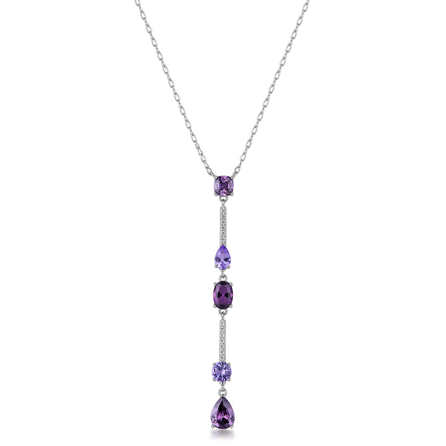 Collana girocollo in argento rodiato 925‰ e pendente con cubic zirconia chiari e cubic zirconia colore amethyst.