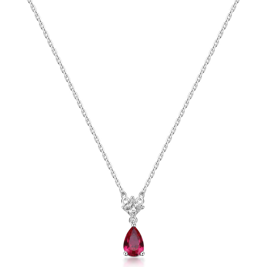 Collana girocollo in argento rodiato 925‰ e pendente con square cubic zirconia e pear cubic zirconia colore ruby.