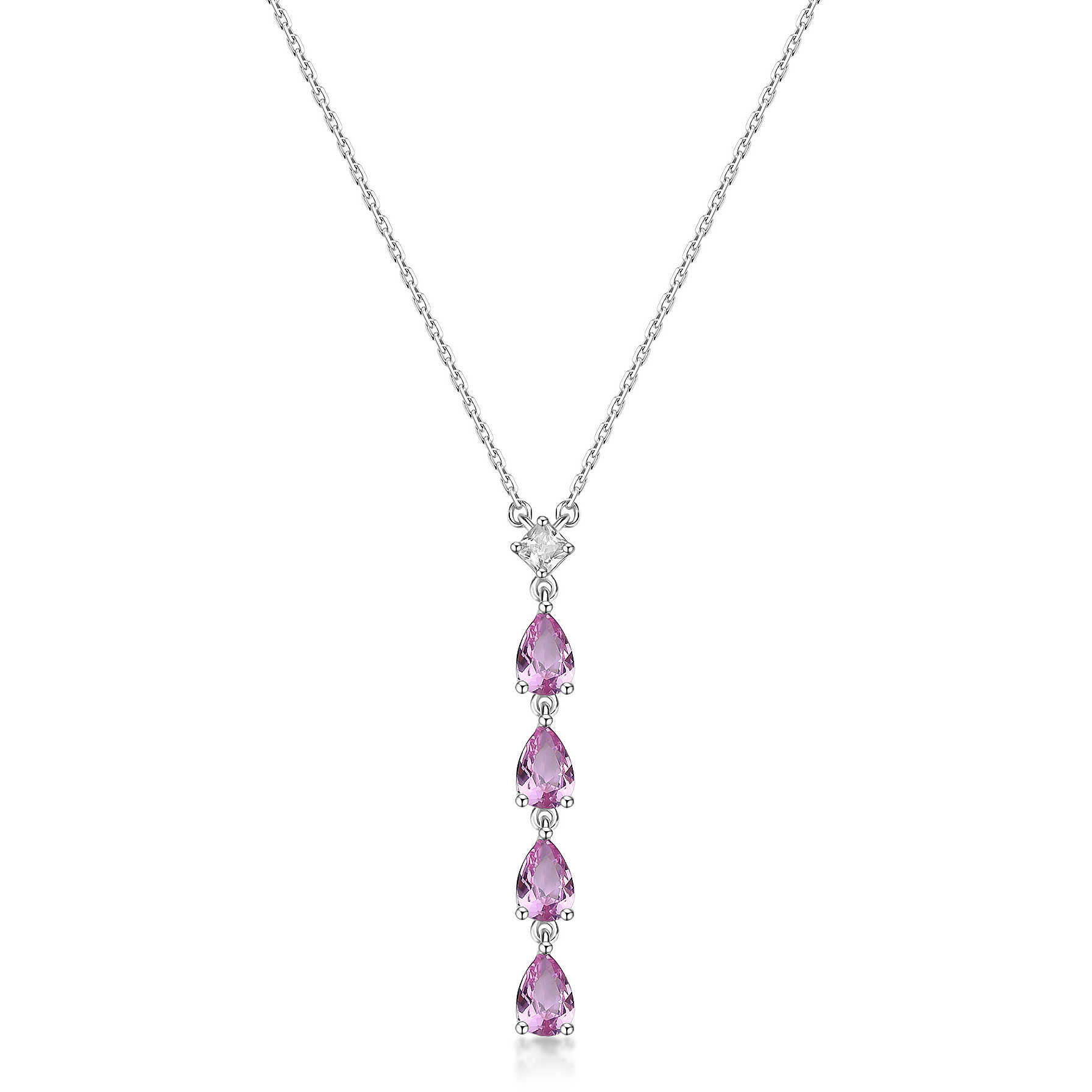 Collana girocollo in argento rodiato 925‰ e pendente con square cubic zirconia e pear cubic zirconia colore light ruby
