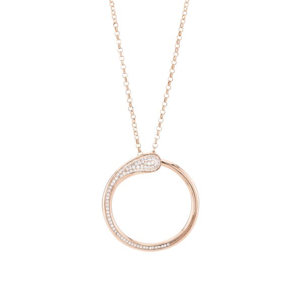 Collana placcata oro rosa con pendente contrariè di pavè di zirconi. Misura 80 cm. Consegna entro 3gg lavorativi.