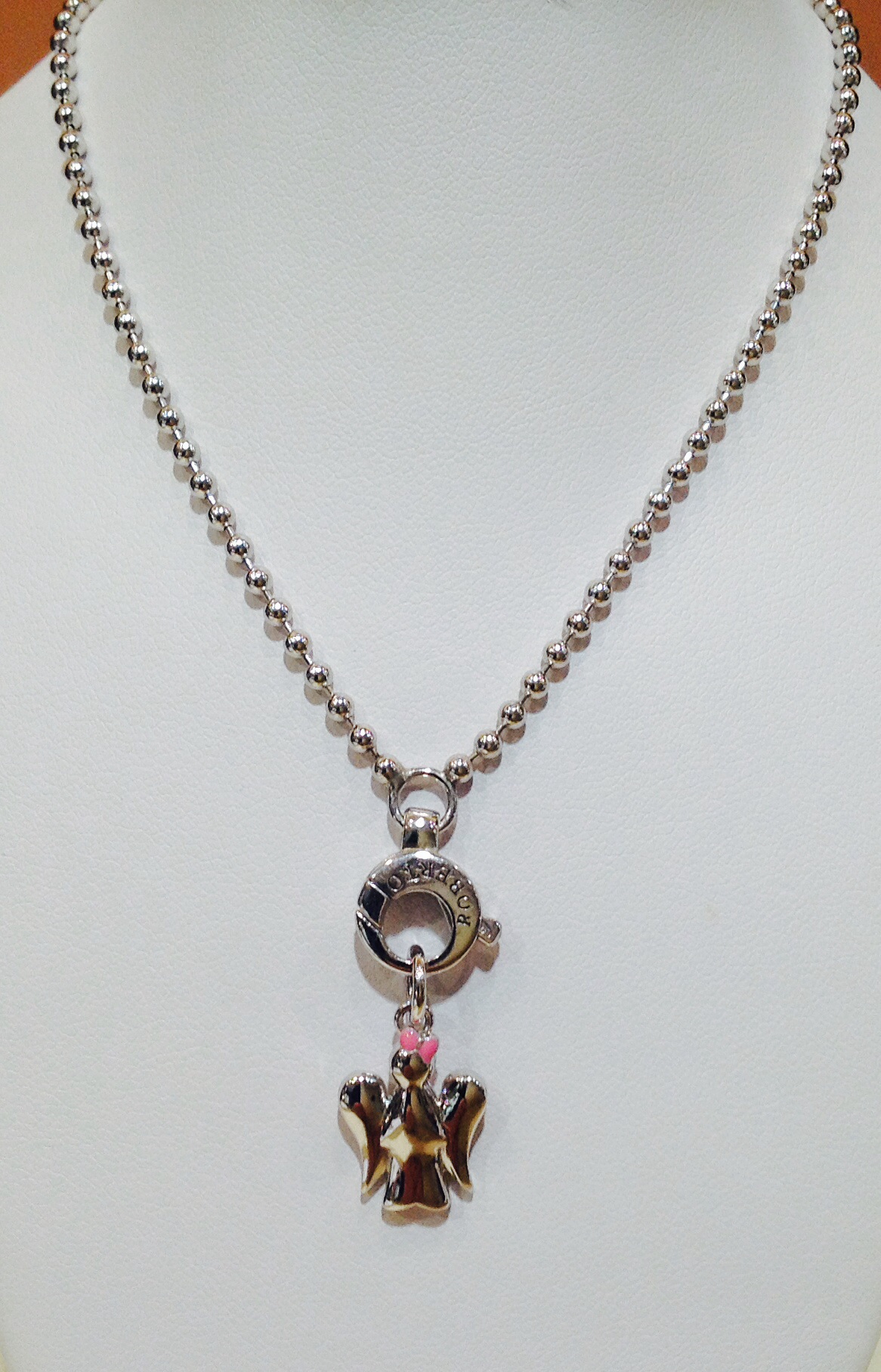 Collana in argento con Angelo smaltato rosa. Lunghezza collana 50cm.