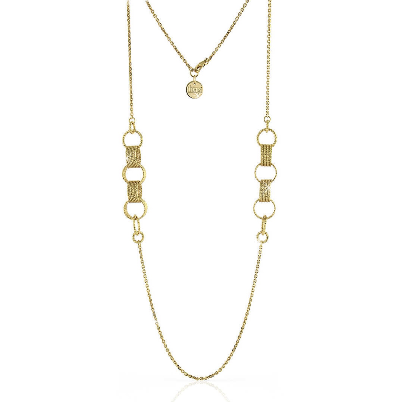 Collana da donna di unoaerre della collezione fili preziosi. Collana lunga con spirali di fili realizzata in bronzo di colore giallo. Misura: 92 cm.Consegna entro 3gg.Spedizione gratuita