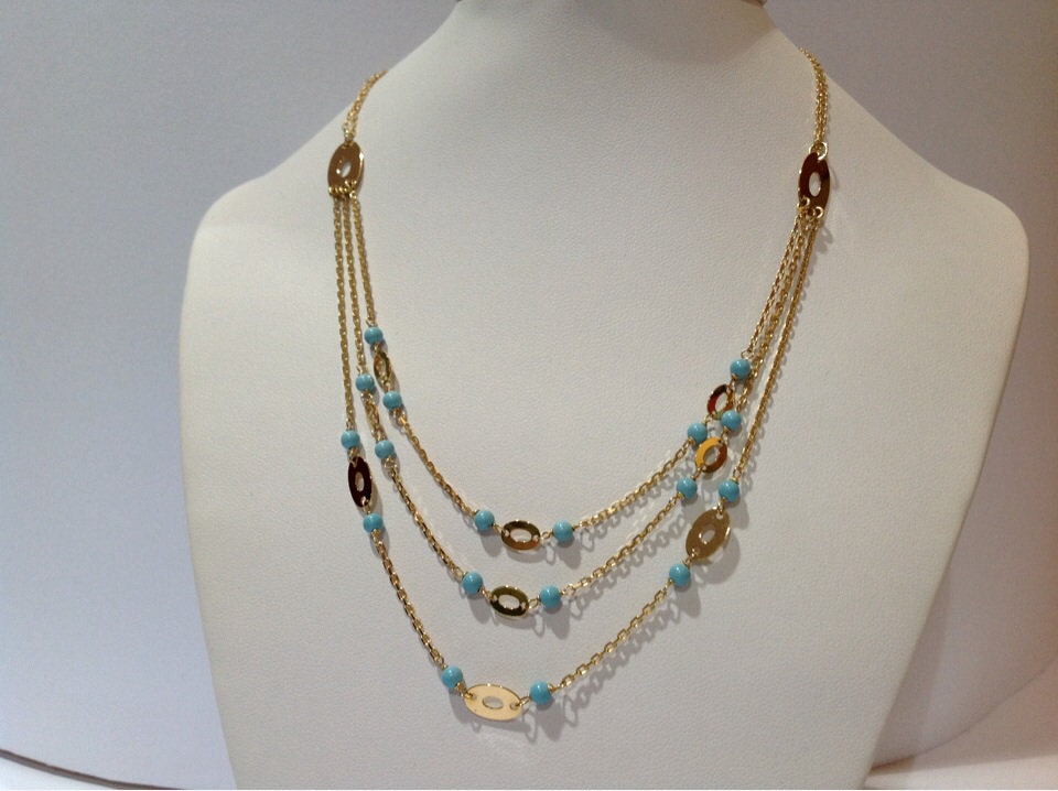 Collana in oro giallo 18kt e corallini di turchese. Consegna entro 3gg. Lavorativi. Spedizione assicurata e gratuita.