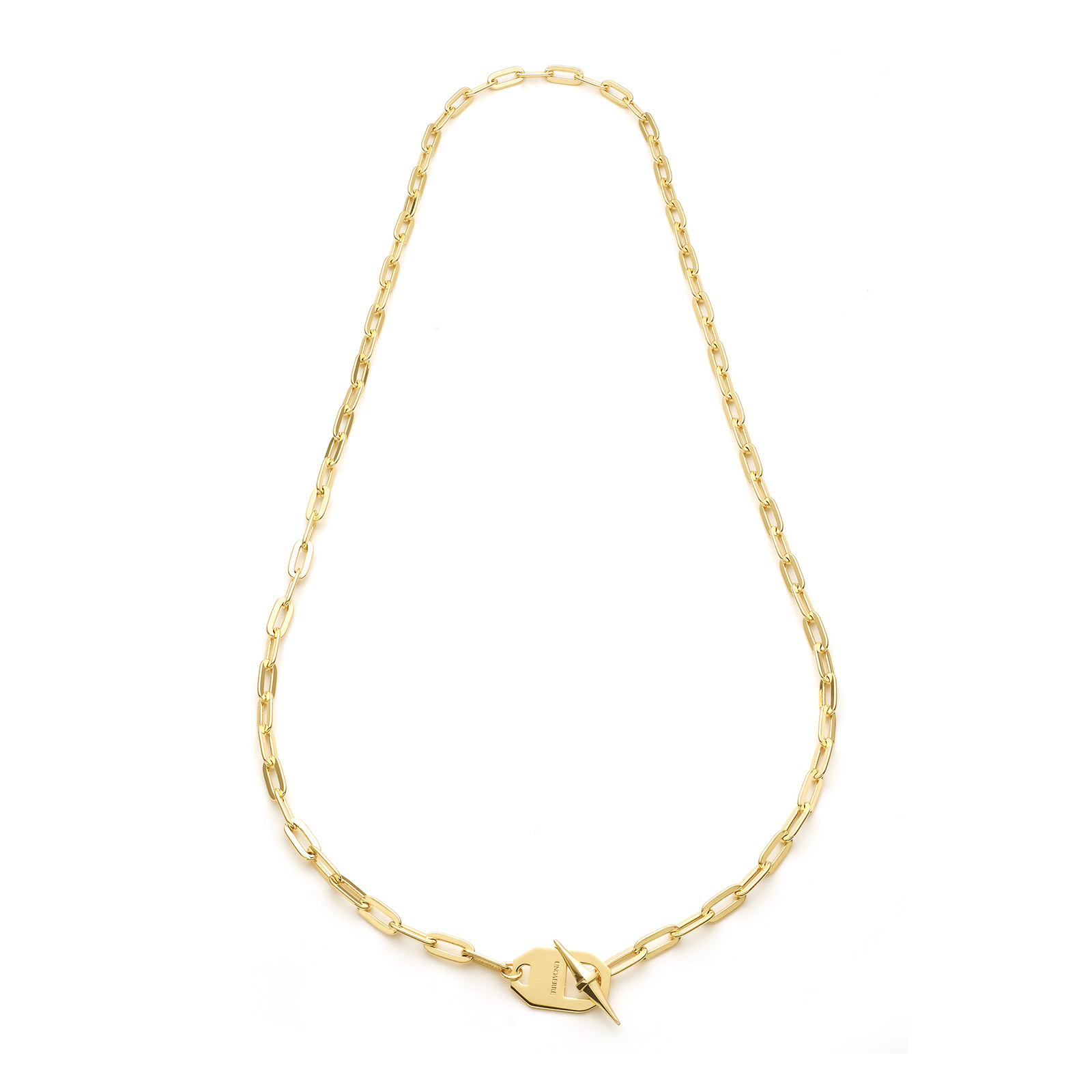 Collana lunga in catena forzatina dorata con chiusura T-bar gioiello, misura 87,00 cm. Consegna entro 3gg lavorativi. Spedizione gratuita.