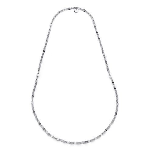Collana lunga in maglia marina piatta, finitura lucida argentata. Chiusura a moschettone, 91,00 cm. Consegna entro 3gg lavorativi. Spedizione gratuita.