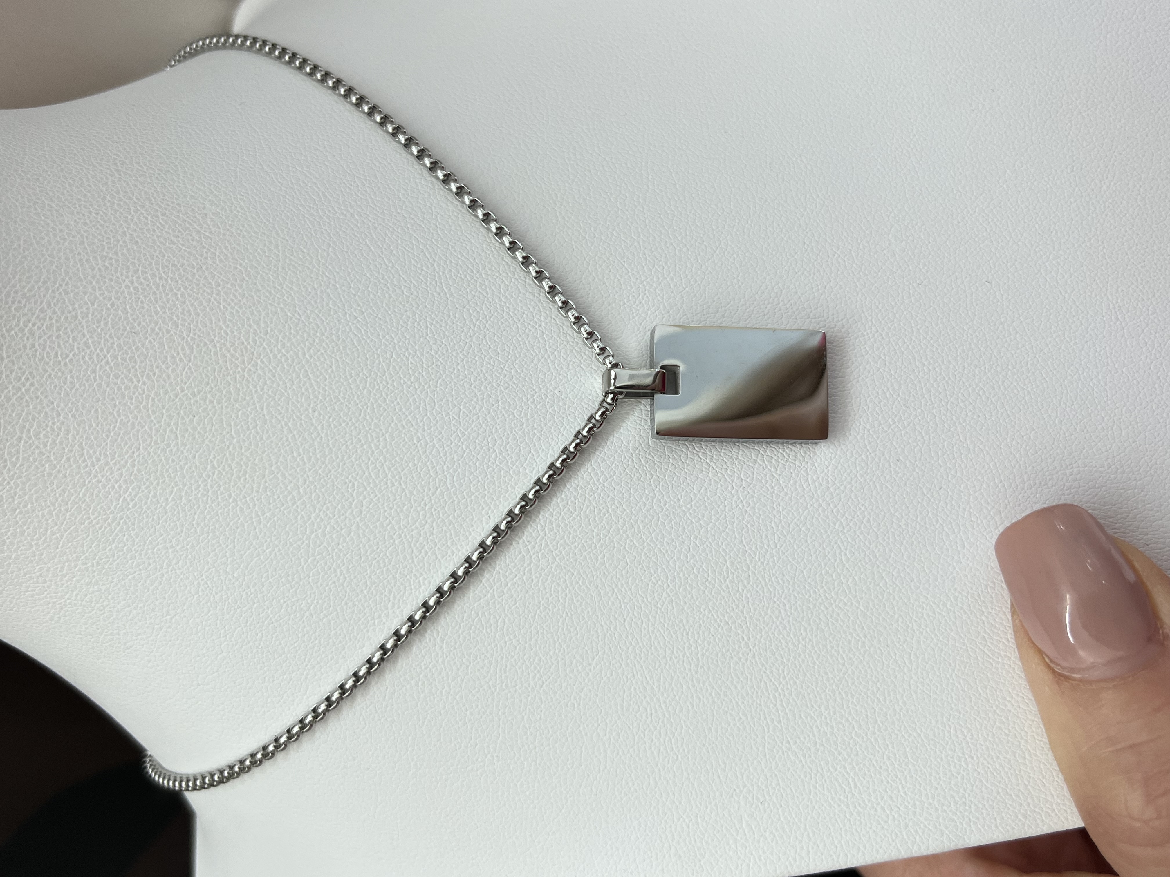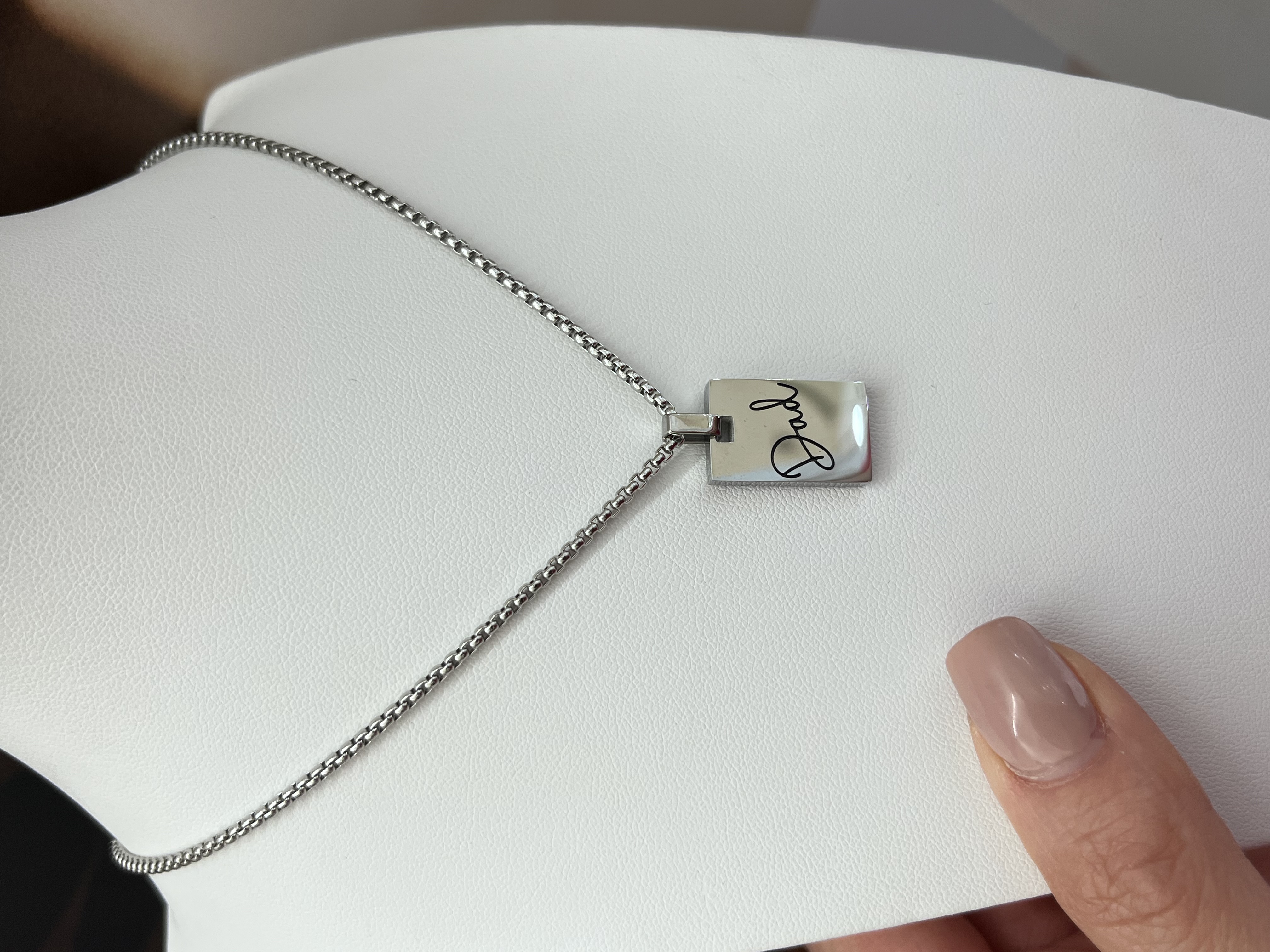 Collana in acciaio con medaglia con scritta Dad da un lato. Lunghezza catenina 50cm +5cm di estensione.