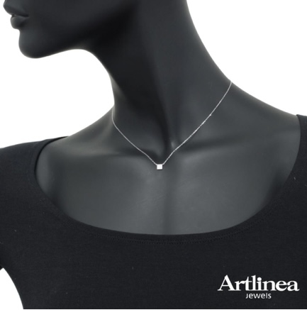 Collana in oro bianco 18 kt quadrato con pavé di diamanti