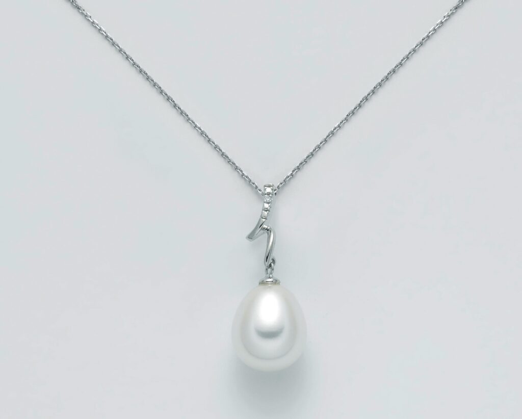 Oreccchini in oro bianco 9kt,modello pendente con n.2 diamantini per punti tot.0,6 G SI è n.2 perle drop col.bianco 8,5-9. Collierino della Miluna in oro bianco 9kt con n.1 diamante per punti tot.0,4 e perla drop col.bianco 9,5-10 Consegna entro 3gg