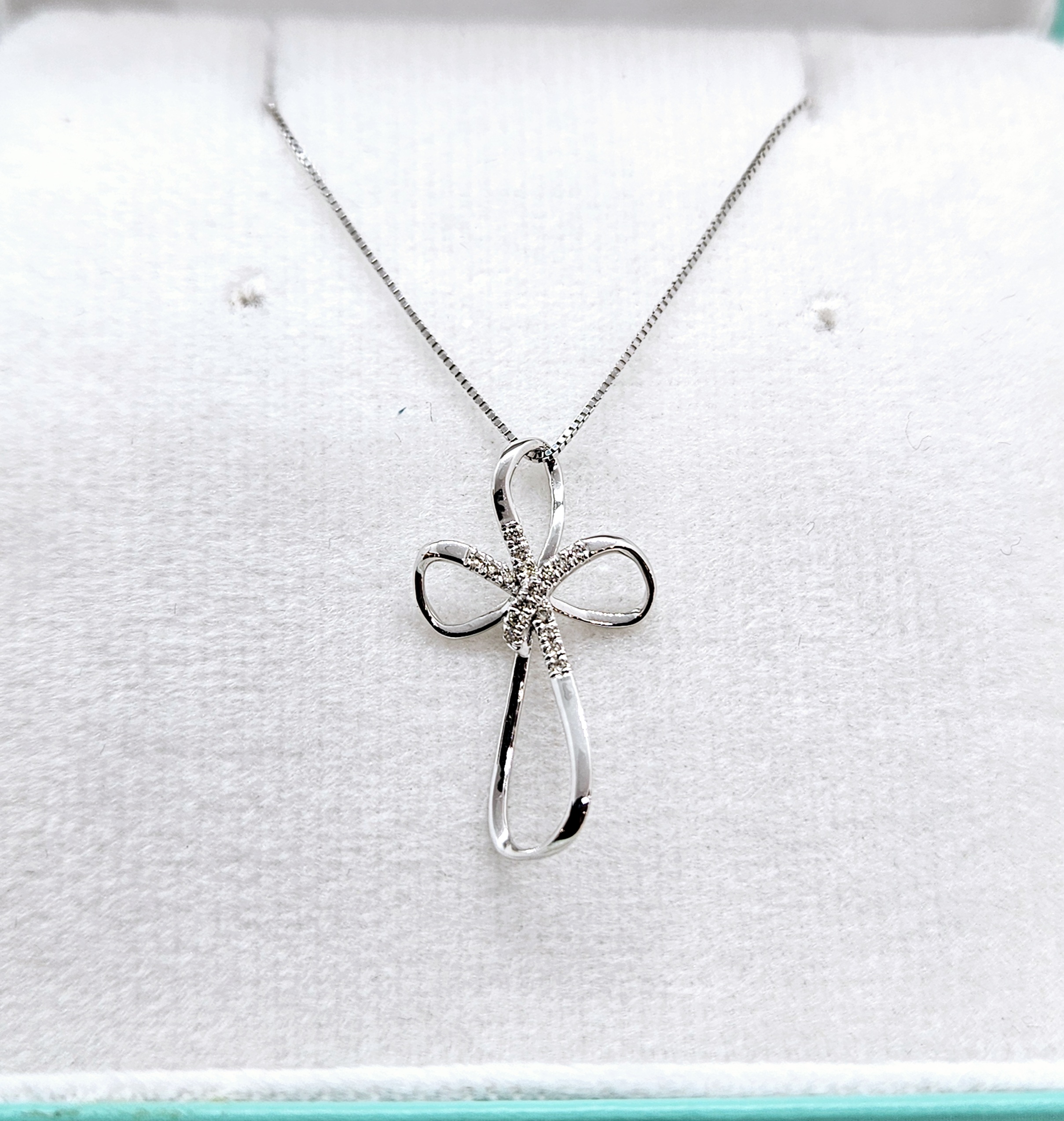 Girocollo in oro bianco 18kt con Croce di Diamanti