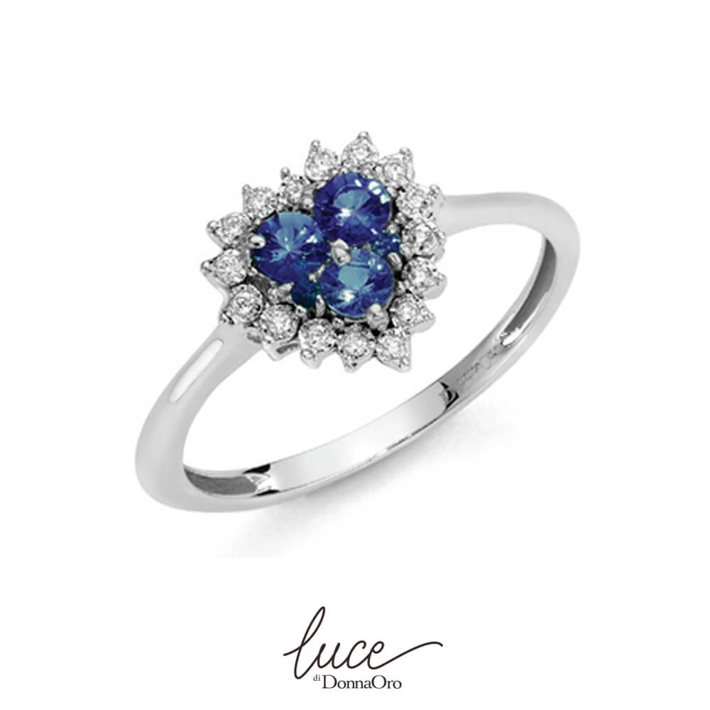 con zaffiri blu del peso di kt0,47 e diamanti