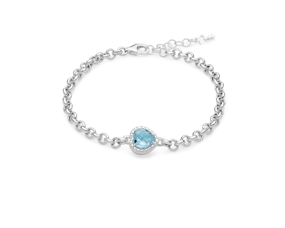 Collezione Gemme del cielo. Bracciale in argento 925 con catena rolò e topazio azzurro naturale a forma di cuore dal diametro di mm.8×8 Ct0,60. Lunghezza bracciale cm.18 allungabile a cm.21 Consegna entro 3gg. Spedizione gratuita.