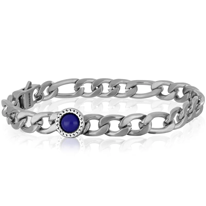 Bracciale in acciao semi matto con pietra lapis.Il bracciale ha come misura cm 22,5 adattabile. Consegna entro 3gg lavorativi.