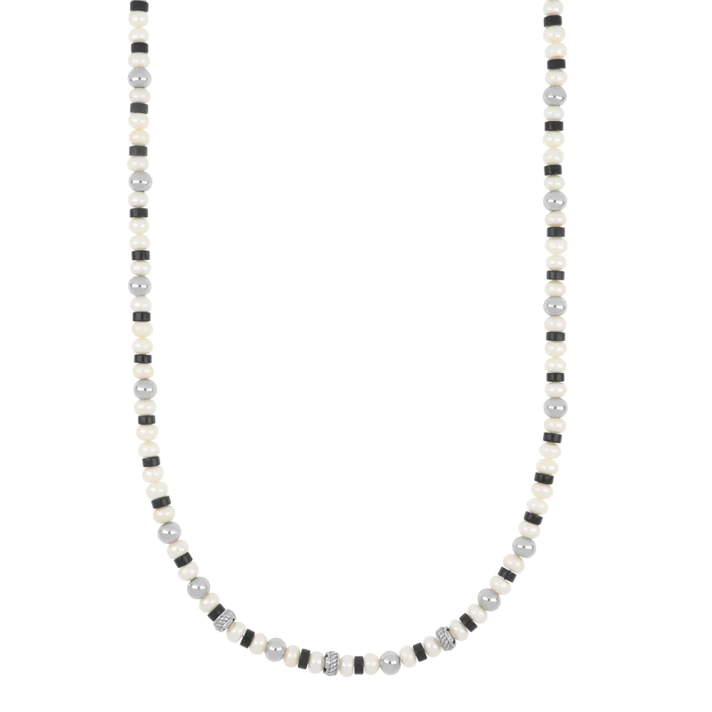 Collana da uomo in acciaio anallergico con perle di fiume e onice