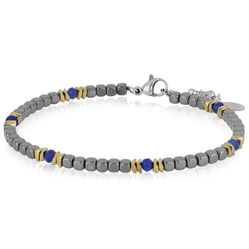 Bracciale in acciaio anallergico con ematite e Agata blu.